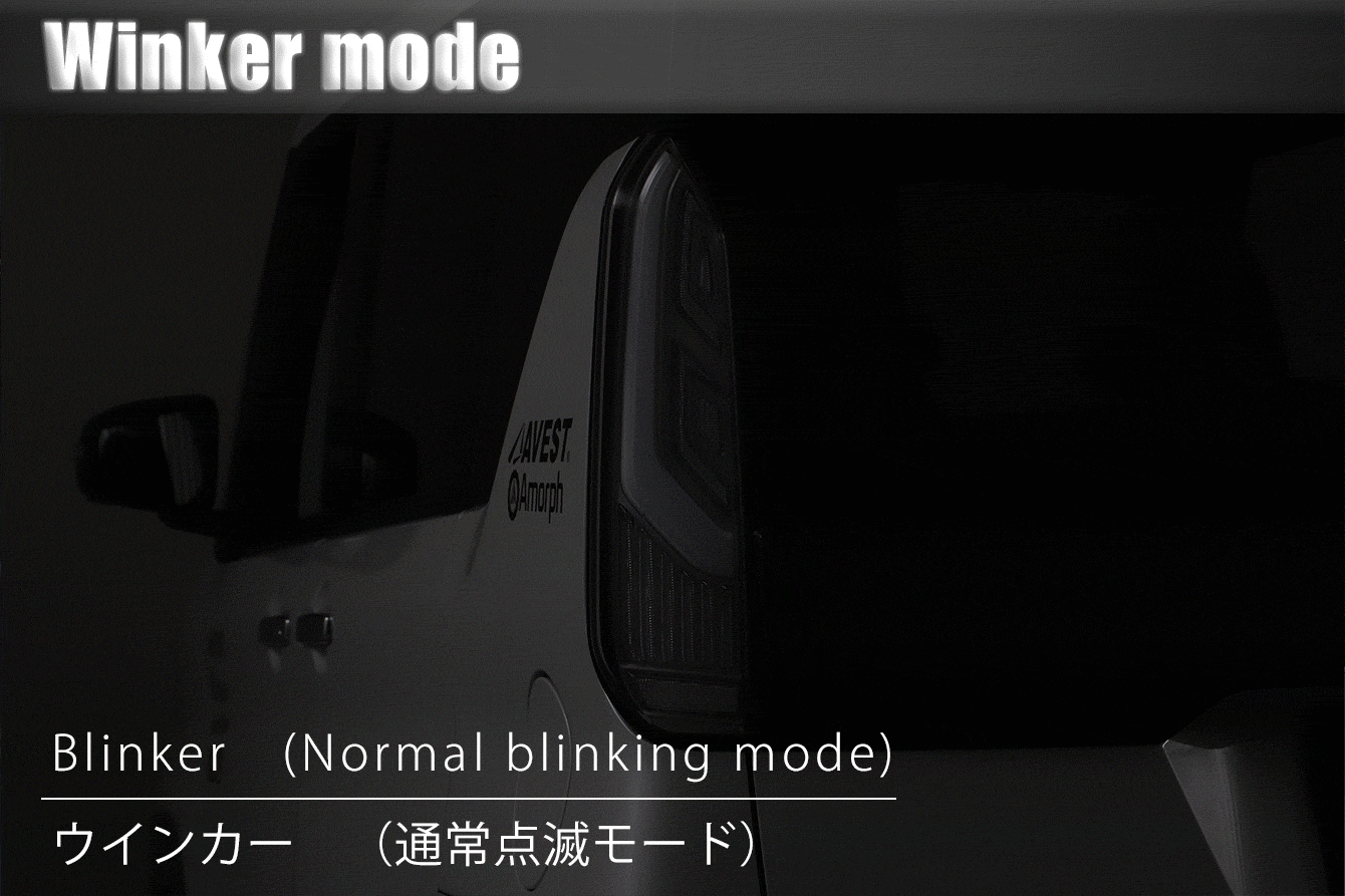 - 流れるウインカーモードと、通常の点滅モードの2タイプ。製品背面のスイッチで切り替えが可能。