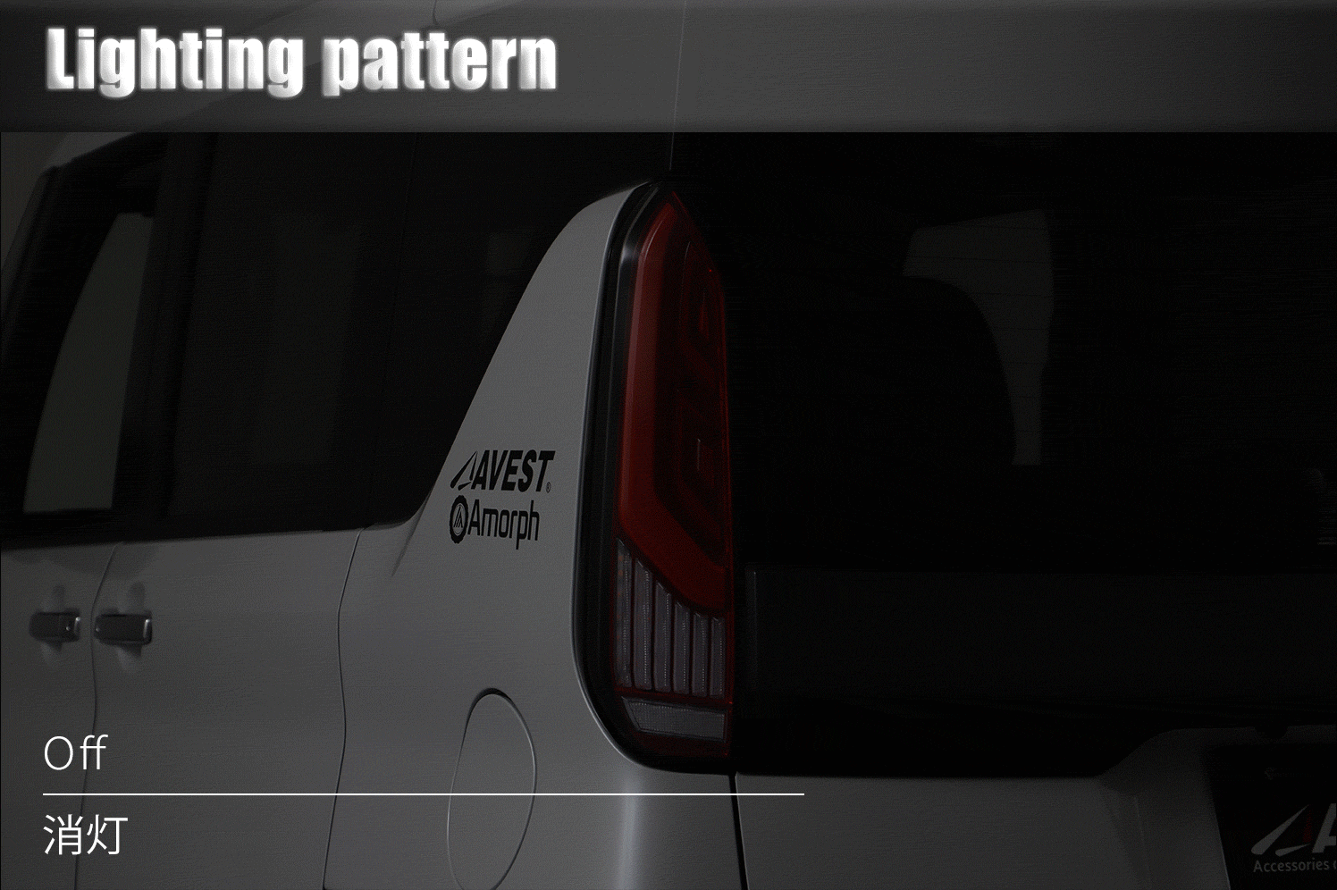 - 流れるウインカーモードと、通常の点滅モードの2タイプ。製品背面のスイッチで切り替えが可能。